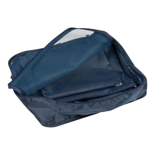 - Praktisches Reiseset bestehend aus einer großen und einer kleineren Tasche mit Reißverschluss und Netzeinsatz sowie zwei kleineren Taschen mit Reißverschluss