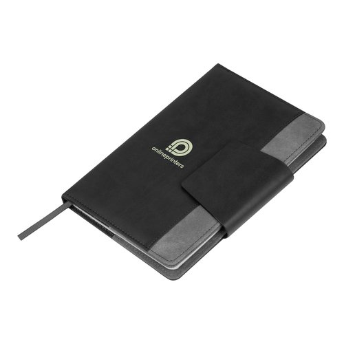 - Umweltfreundliches A5 Notizbuch aus recyceltem PU mit Magnetverschluss und 160 Seiten liniertem Zuckerrohrpapier