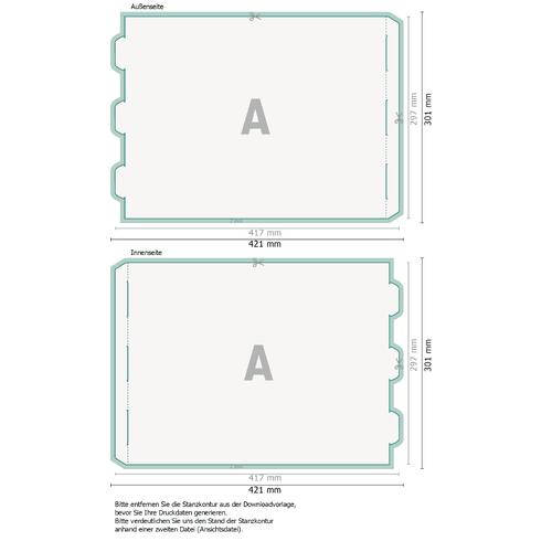 - Datenformat (inkl. 2 mm Beschnitt): 42,1 x 30,1 cm