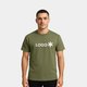 Grünes Baumwoll-T-Shirt mit kurzen Ärmeln.