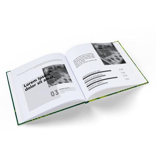 - Hardcover-Buch im Hochformat mit geradem Rücken und spitzen Ecken, inklusive weißem Kapitalband