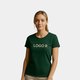 Grünes Damen T-Shirt aus Baumwolle mit kurzen Ärmeln.