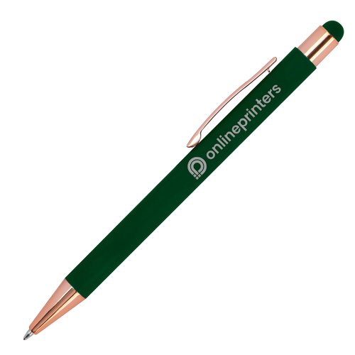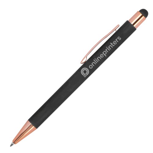 - Kugelschreiber aus Aluminium mit rubber finish Oberfläche, roségoldenen Applikationen und Touch-Pen
