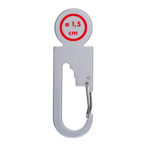 - Multitool aus recyceltem Aluminium mit Einkaufswagenchip, drei verschieden großen Sechskantschlüsseln und einem Karabiner
