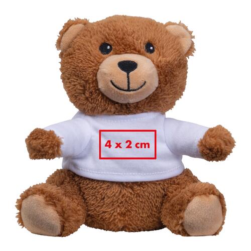 - Kleiner Plüsch-Teddybär aus Polyester mit weißem T-Shirt aus recyceltem Polyester