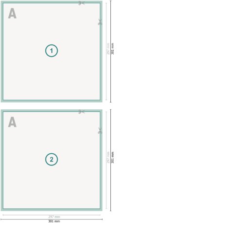 • Datenformat (inkl. 2 mm Beschnitt): 30,1 x 30,1 cm
