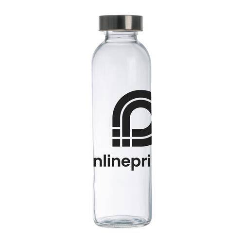 - Trinkflasche aus Glas mit einem Fassungsvolumen von 600 ml und einem Edelstahldeckel