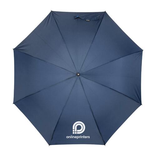 - Automatiksturmschirm (winddicht) mit aus 190T recyceltem Polyester mit gebogenem Kunststoffgriff (ABS) und Metallspitzen